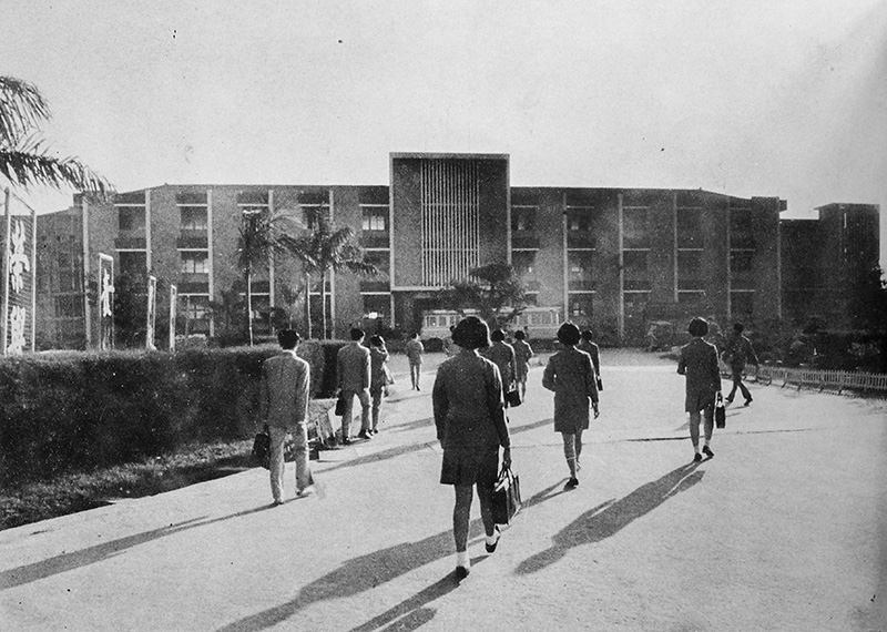 昔日學生於教學樓合影